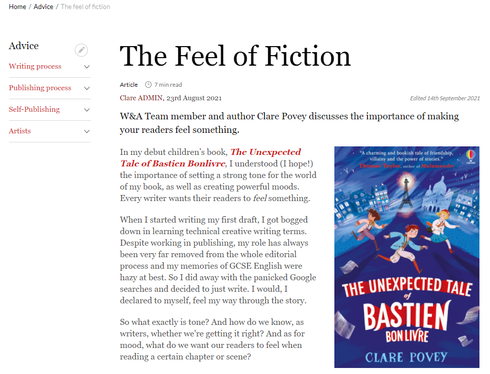 I wrote an article for writersandartists.co.uk about how you can find the right tone for your story to make your reader feel something.